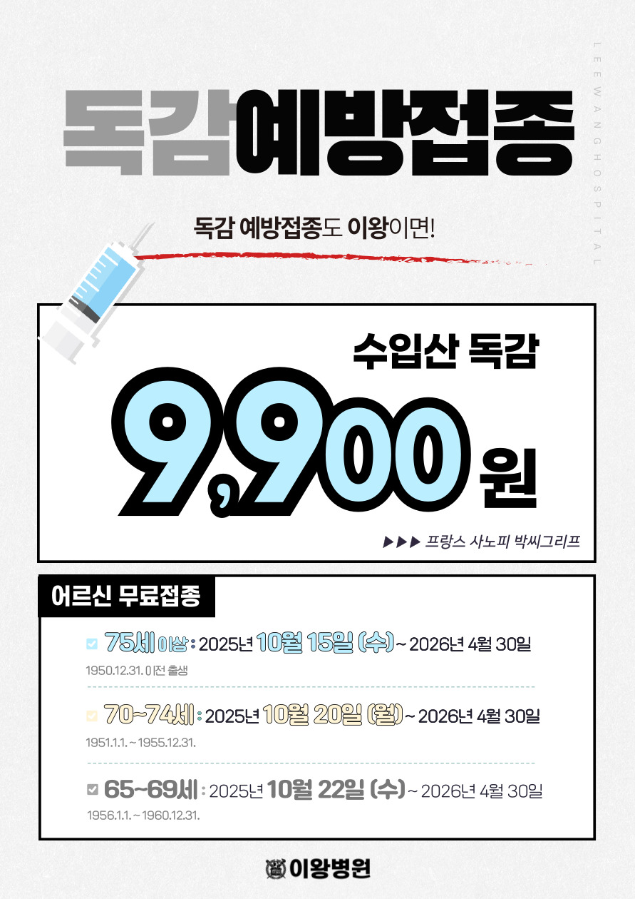 프랑스 수입산 사노피의 박씨그리프 독감 백신을 9,900원에 접종 가능합니다.